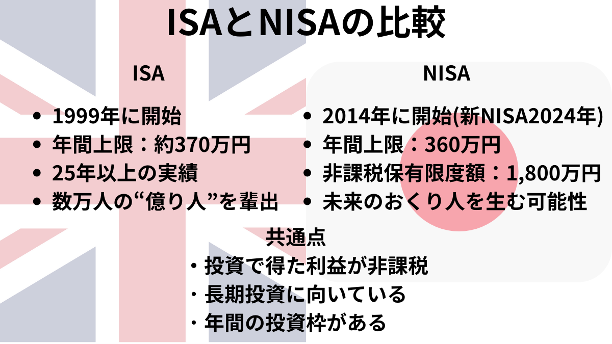 では、そのISAをモデルにした日本のNISAには、どんな共通点があるのでしょうか?