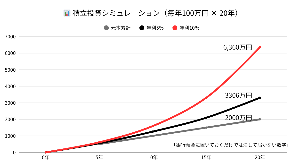 これはあくまで「複利の力」を示すシミュレーションですが、桁違いの差が出ることは直感的に伝わるはずです。